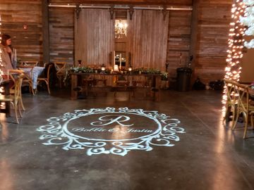 Customized Monogram to project your names, initials and/or wedding date on any floor or wall. We can use your custom brand, wedding theme, or animation to create a monogram that is distinctly yours.