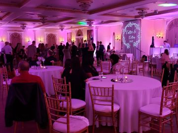 Up-Lighting adds color to the walls, head table, or cake table. Wireless up-lighting has no wires and thousands of colors to choose from. We use these to create a the perfect visual effect in the colors of your choosing around your head table where all the eyes will be focused.