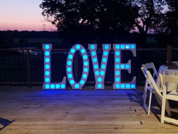 Large 4 foot LOVE letters can be display in any color or can fade from one color to another. We can placed them in front of the Head Table, Along the Dance Floor, or the Entrance to your receiption creating the perfect photo opportunity.