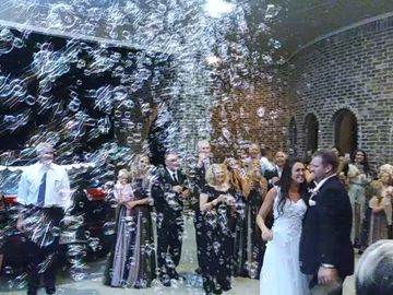 We’ve discovered that many people aren’t too sure about using a bubble machine at their wedding until they see it in action. They create a romantic fantasy feeling when used at a ceremony after your first kiss and as every one exits, during the first dance, or at the send off exit at the end of the night . This creates an atmosphere of happiness and celebration, which is the exact tone you want to establish as you leave your friends and family.