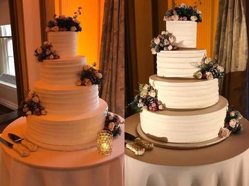 Pin Lights! You spend so much on cakes and flowers why not bring the wow factor and make them pop? We use pin spot lighting to highlight your beautiful cake, flowers, and head table.